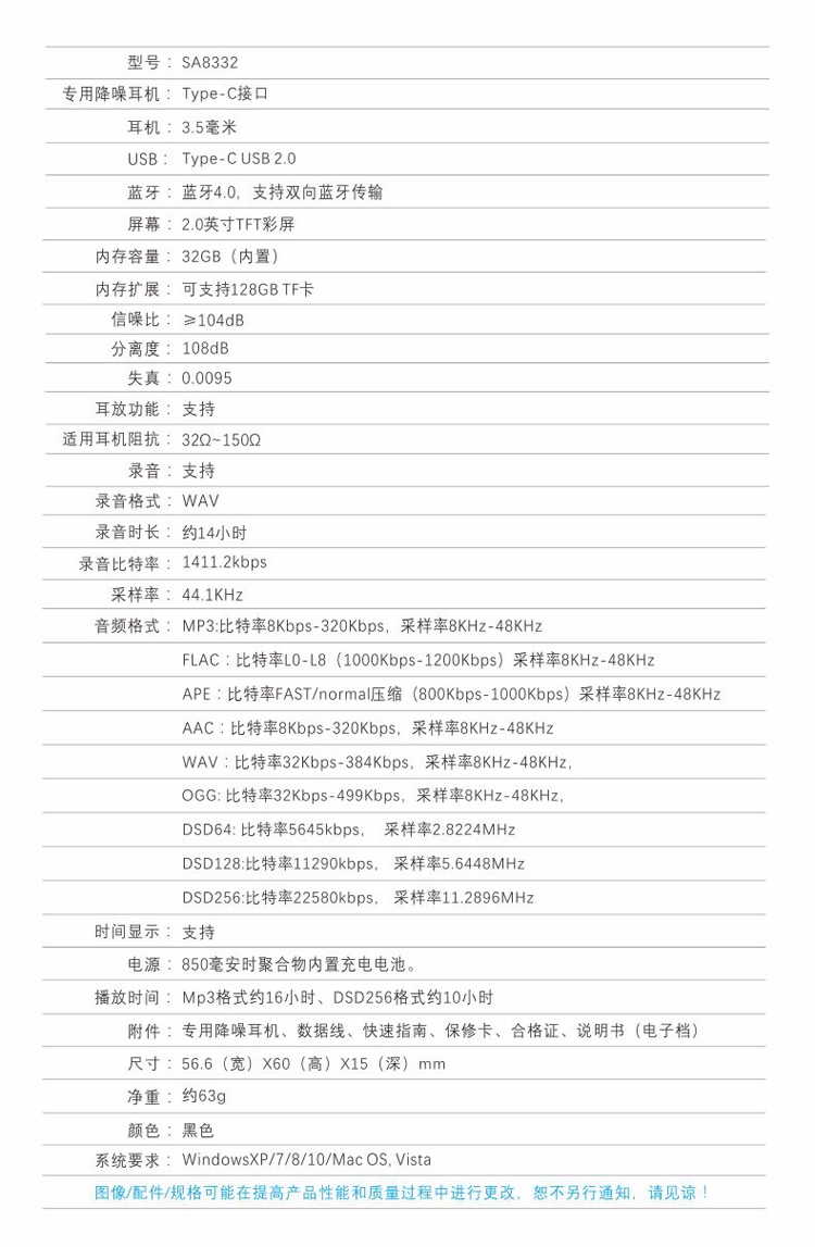 音頻播放格式:MP3,APE,FLAC,OGG,AAC