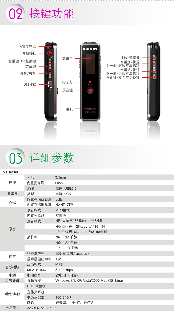 特性 時尚小巧,立體聲錄音!
