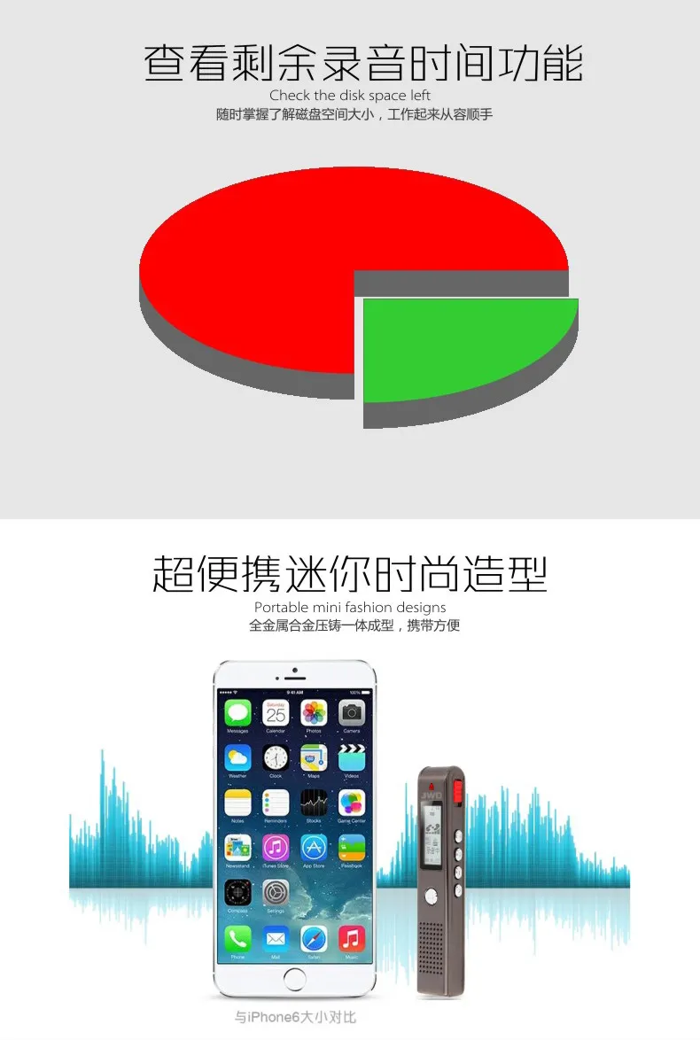 高靈敏麥克風,快速一鍵錄音,A-B復讀,支持存儲卡取換,斷電低電保護,支持存儲卡取換