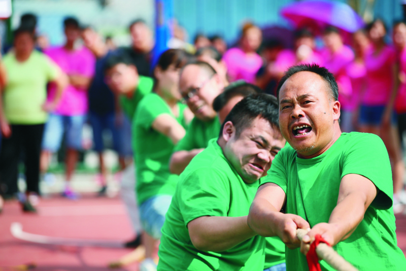 第二個(gè)比賽日舉行摸石頭過河、托運(yùn)大氣球、同舟共濟(jì)、男女混合拔河等余下項(xiàng)目。異常激烈的拔河比賽把冠軍的懸念留到了最后,觀眾們忘情的喊著加油,運(yùn)動(dòng)員們恨不得再大力一些,把象征勝利的紅繩徹底拉到己方區(qū)域。