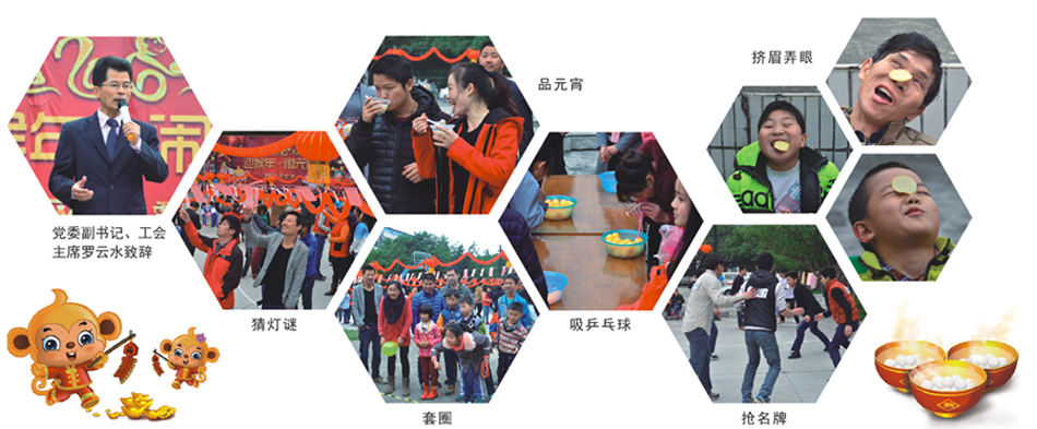 2月21日下午14點,由公司工會、團委組織的《迎猴年 鬧元宵》游園活動,在平湖京華智能產業園文體廣場隆重舉行。 猜謎語、釣魚、打保齡球、擠眉弄眼等10個游園項目,吸引了300多名員工及家屬參與。游園項目獨具匠心,現場獎品豐富多彩,員工參與熱情高漲。活動結束后,京佳物業公司食堂還為參加游園活動的員工、家屬送上了熱氣騰騰的湯圓。整個工業園區沉浸在歡樂祥和的氣氛之中!