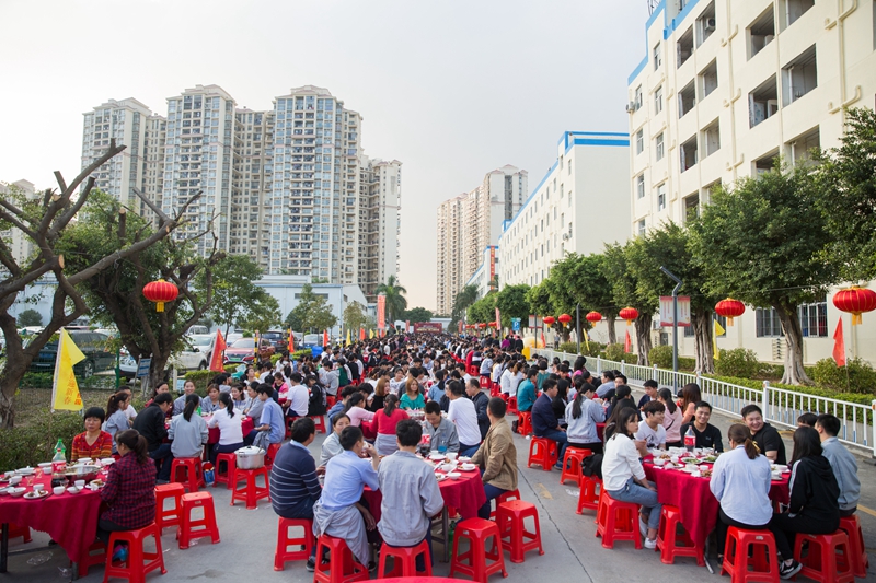在一片歡聲笑語中,1600人的“大盆菜團年宴”在喜慶祥和的氣氛中開始了。品嘗著獨具廣東特色的“大盆菜”宴,大家抑或喜笑顏開、開懷大笑,抑或故作鎮定、心中竊喜,抑或觥籌交錯、暢說衷腸,抑或深情厚意、你儂我儂……