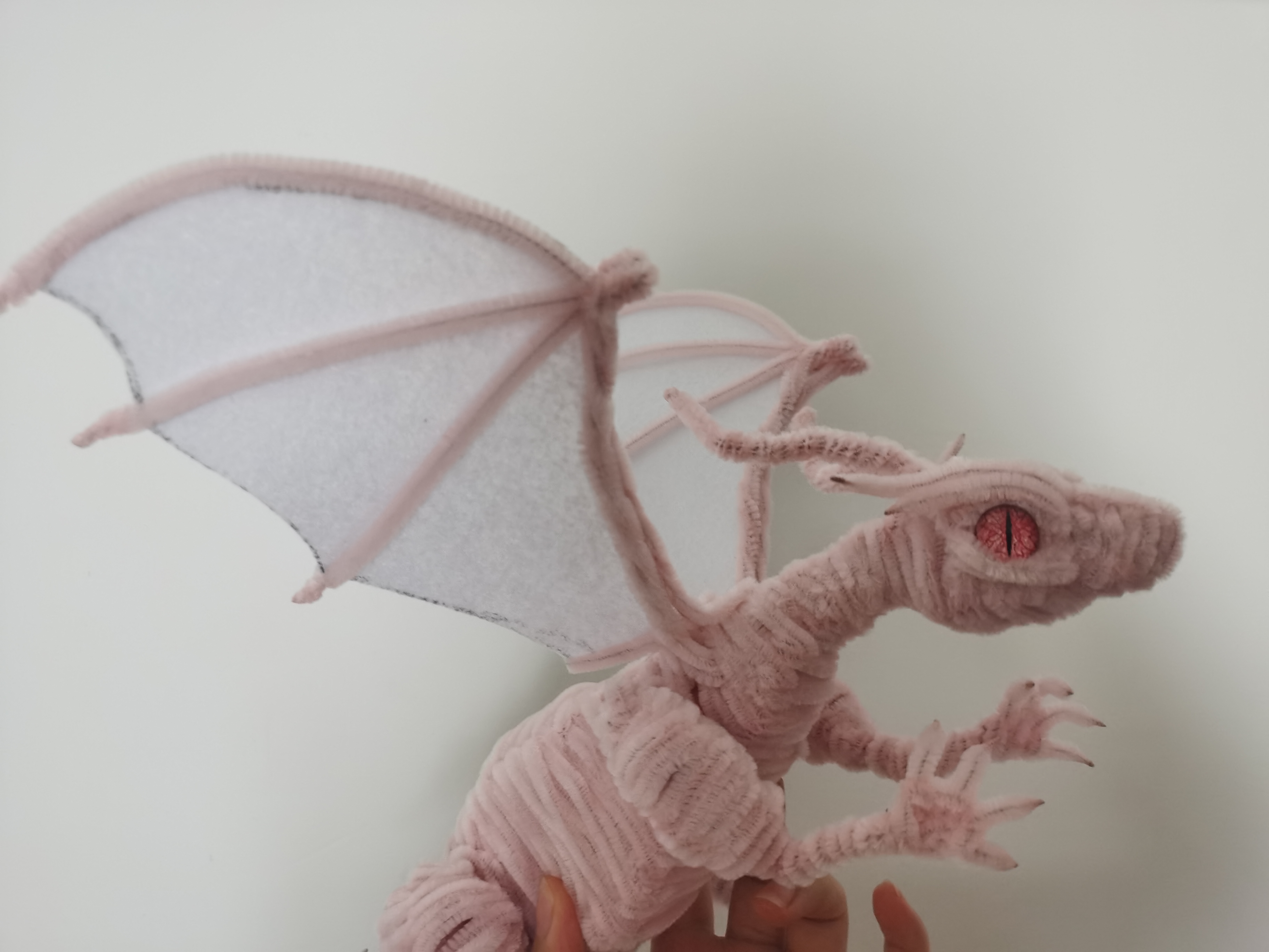 安心居家,用扭扭棒、酒精膠和無紡布DIY了一個小恐龍。