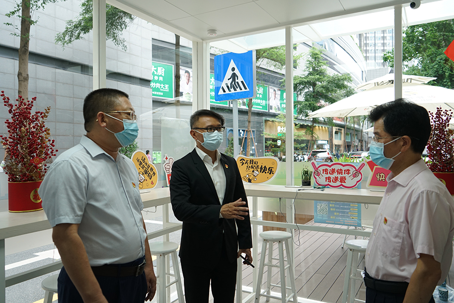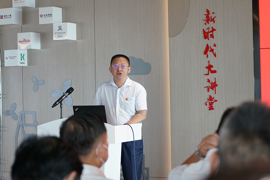 隨后,雙方在京基100大廈A座44樓黨群服務中心舉行黨建共建交流活動。陳小斌書記介紹了京基100聯合黨委的概況,并詳細分享了樓宇黨建的工作經驗。他表示,京基100聯合黨委以黨群服務中心為載體,結合樓宇黨組織的特點,通過“樓宇+物管”、“黨建+經濟”等一系列創新舉措,不斷破解樓宇黨建工作難題,充分利用樓宇資源,將黨建工作融入樓宇管理和企業發展,搭建共享共贏共創平臺。