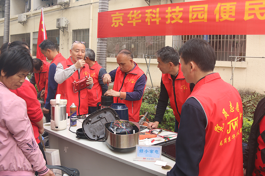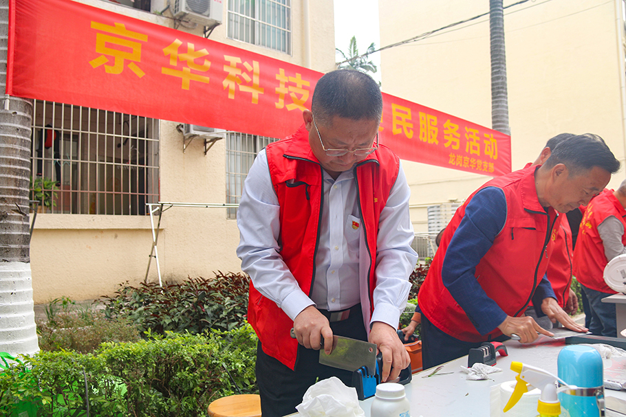 公司黨委在智能科技園區開展“我為群眾辦實事”便民服務黨日活動,以實際行動踐行雷鋒精神薪火相傳。在京華公司黨委書記、總經理王國慶同志和黨委委員歐文剛同志的帶領下,公司黨員積極參與到活動中,為科技園職工及其家屬提供維修小家電、測量血壓、理發、磨菜刀等暖心服務,讓學雷鋒活動融入日常、化作經常,在實踐中傳承雷鋒精神服務人民、無私奉獻的寶貴品格。