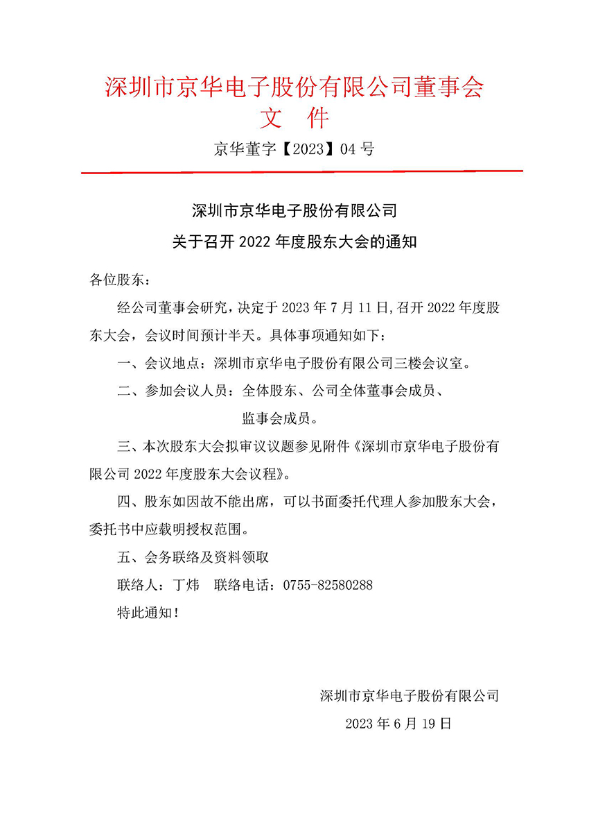 關(guān)于召開2022 年度股東大會的通知