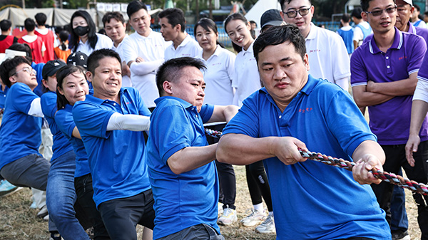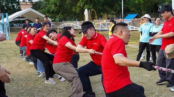 最后壓軸項目,也是最精彩激烈的環(huán)節(jié)——拔河比賽。隊員們在吶喊助威中團結(jié)合作,穩(wěn)定的姿勢傳遞無聲的團結(jié),不到最后一刻決不放棄。經(jīng)過幾輪的循環(huán)晉級賽,京華恐龍抗狼隊成為本項目的一匹黑馬,與往年的常勝冠軍隊——京佳物業(yè)無敵隊一同進入決賽。兩支隊伍斗志昂揚,拔河開始就陷入僵持階段,難分伯仲。最后京佳物業(yè)無敵隊依靠穩(wěn)定的發(fā)揮奪得最終的勝利。