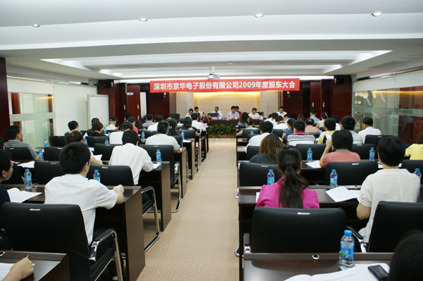 2010年7月20日上午,京華公司2009年度股東大會在裝飾一新的會議室隆重舉行。出席本次股東大會的股東代表有:南京熊貓電子股份有限公司、深圳中電股份有限公司、熊貓電子集團有限公司、深圳市中電物業管理有限公司、內部職工股東代表共71人,代表股數為104741485股,占總股份的91%。符合《公司章程》的有關規定,本次股東大會合法有效。